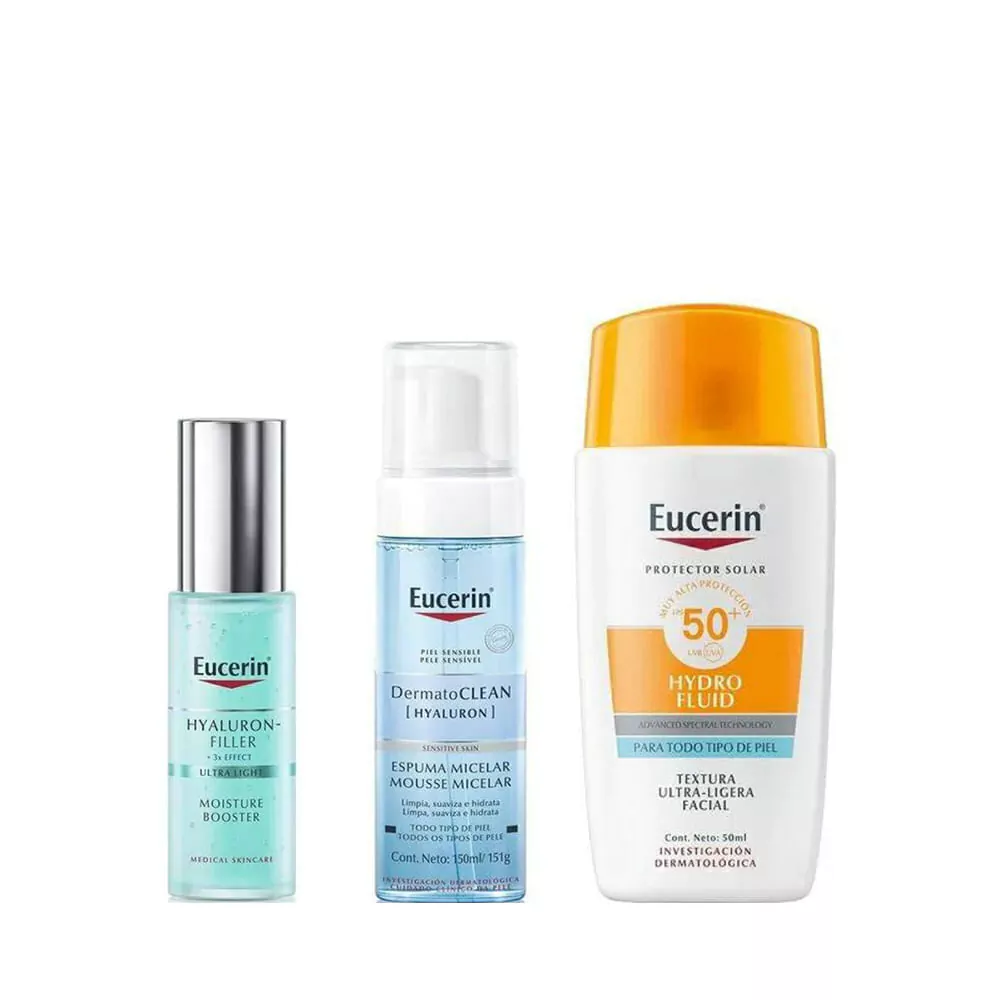 Espuma Micelar de Limpieza Eucerin Dermatoclean con Ácido Hialurónico x 150 ml + Gel x 30 ml + Protector Solar x 50 ml