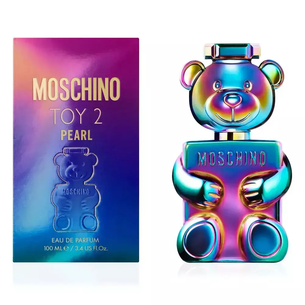 Botella con forma del osito Moschino que recuerda al fondo del mar y nácar de Tahití. Cada botella viene en diferentes tonos para resaltar la atención al detalle, la sofisticación y la singularidad de cada producto.